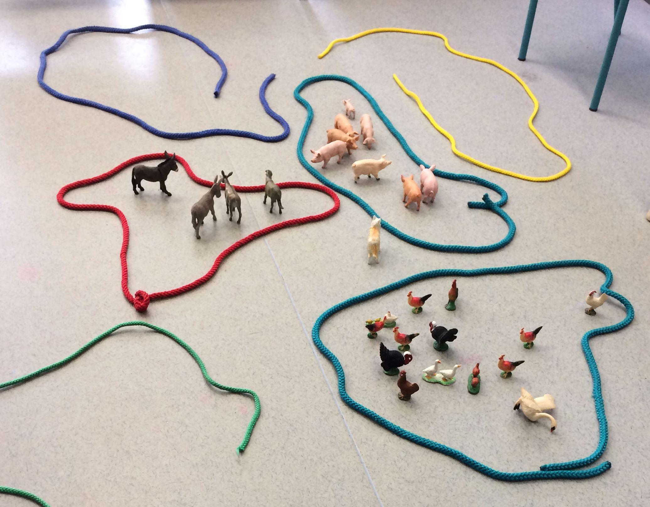 « Tu vas poser la peluche ou les animaux par terre et tu vas avec la ficelle entourée et faire en